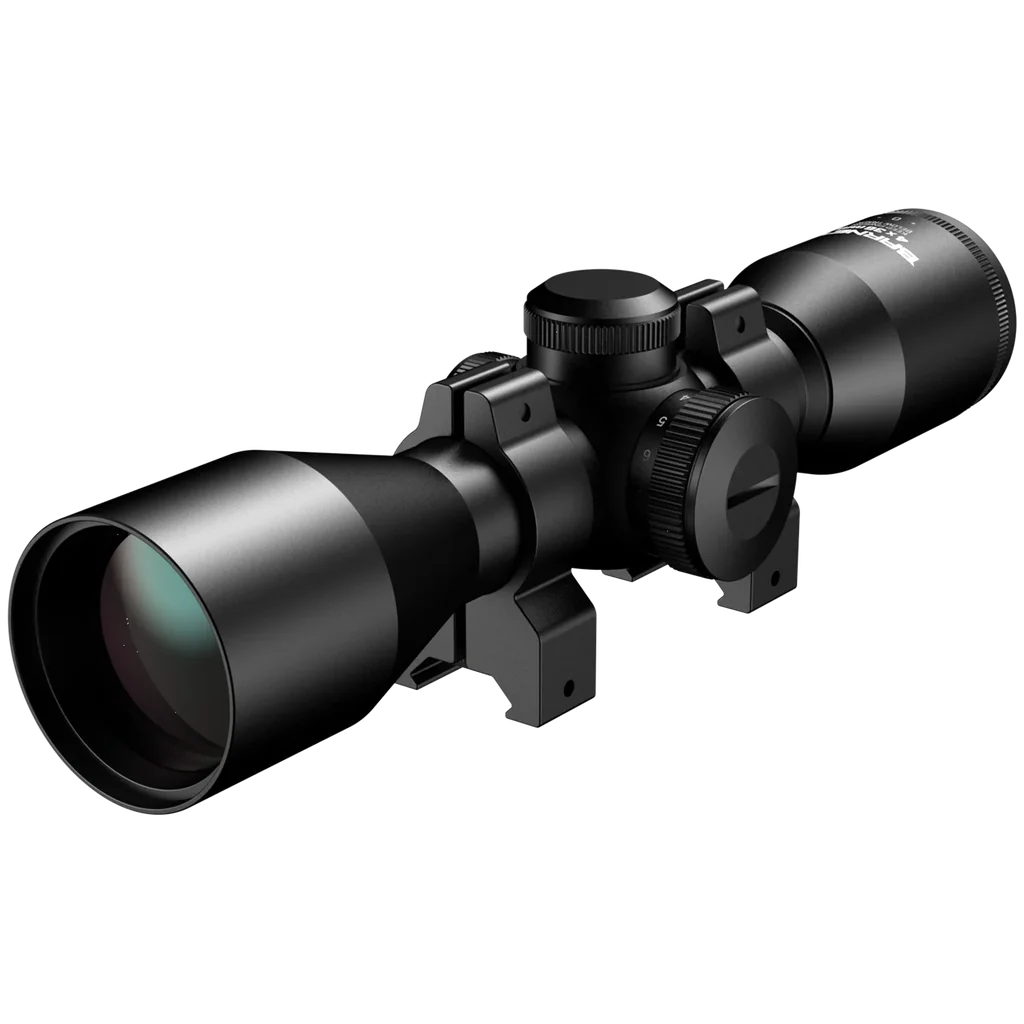 A 4x36mm scope featuring multiple reticles and red/green illuminated reticle options, suitable for use with crossbows. Compact optical sighting solution for aiming in varying light conditions.