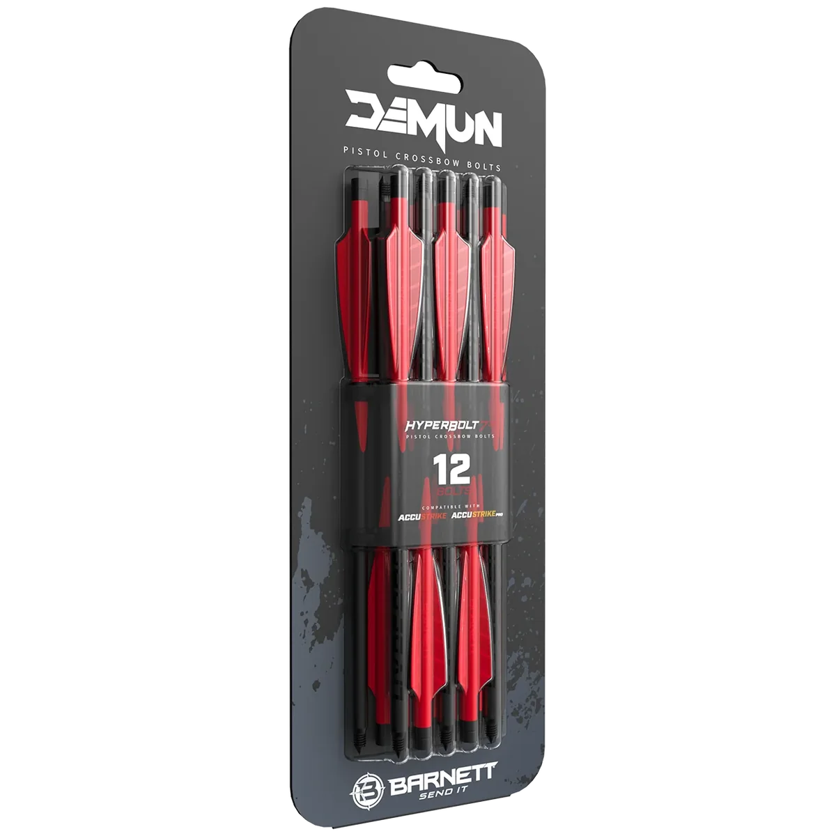 The DEMUN HYPERBOLT – 3 FLETCH (12PK) is a 12-pack of 7-inch crossbow bolts engineered for compatibility and convenience. Each bolt comes with a 3-fletch configuration and a threaded target point fitted as standard, allowing straightforward attachment of DEMUN's range of interchangeable screw tips. These bolts are designed specifically to fit Demun Accu-Strike and Demun Accu-Strike Pro crossbows, providing a direct replacement or spare set for those models. The 3-fletch profile supports stable flight during practice and target sessions, while the threaded points make it simple to change tips to suit different target setups or preferences.