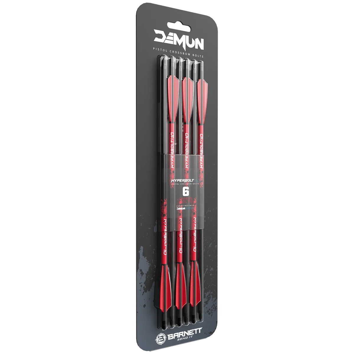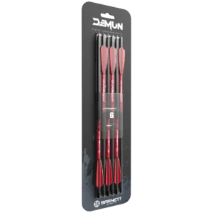 The DEMUN HYPERBOLT C10 is a set of precision 10-inch carbon bolts engineered to deliver consistent, stable performance. Each bolt features a 3-fletch profile to promote true flight and repeatable accuracy, and the carbon construction provides a strong, reliable shaft that balances durability with responsive performance. Supplied as a pack of six, these bolts are ready to fit straight from the pack. Threaded tips make it simple to swap between standard field points and proprietary Demun broadheads, giving you quick adaptability without tools. Designed specifically for the Demun Storm crossbow, the Hyperbolt C10 offers an optimised fit and dependable operation when paired with that model.