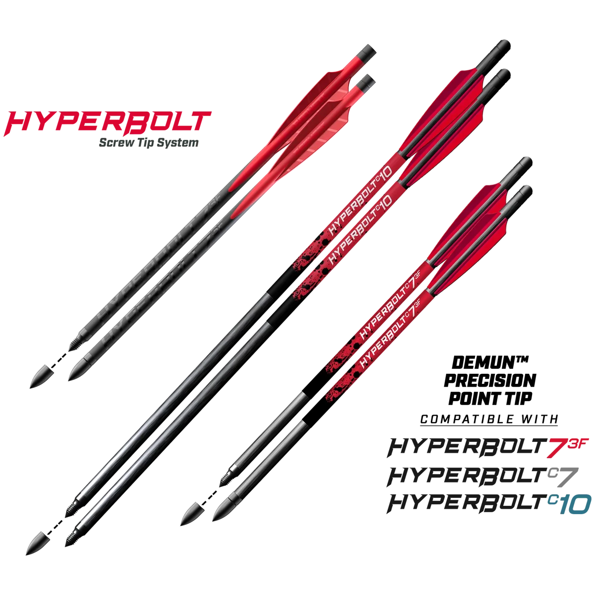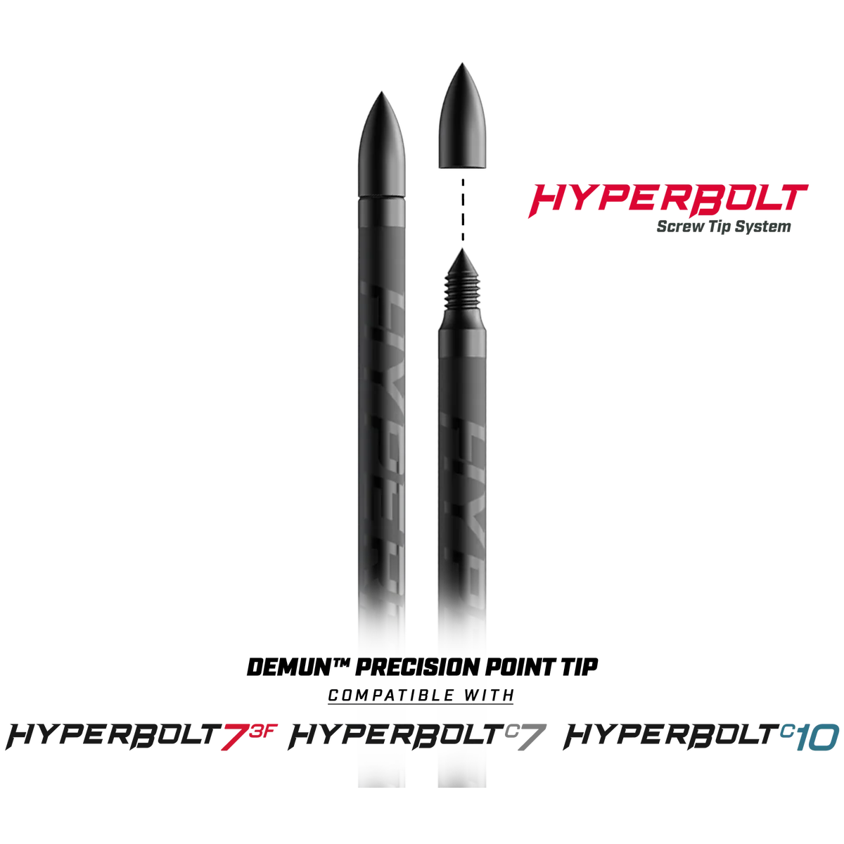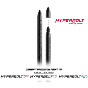 The Demun Precision Bullet Point Heads (12pk) are screw-tip field points designed specifically for use with the Hyperbolt 3F, Hyperbolt C7 and Hyperbolt C10. Each point screws onto the threaded tip of a bolt for a secure fit and consistent alignment. Supplied in a 12-piece pack, these bullet points provide a convenient, economical way to refresh bolt tips and maintain consistent performance for practice and range sessions. Quick to fit and easy to carry as spares, they reduce downtime and help keep your bolts performing reliably between full replacements.