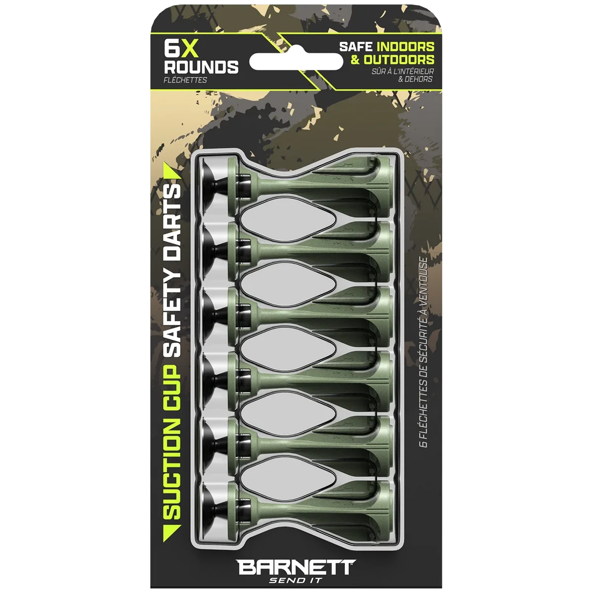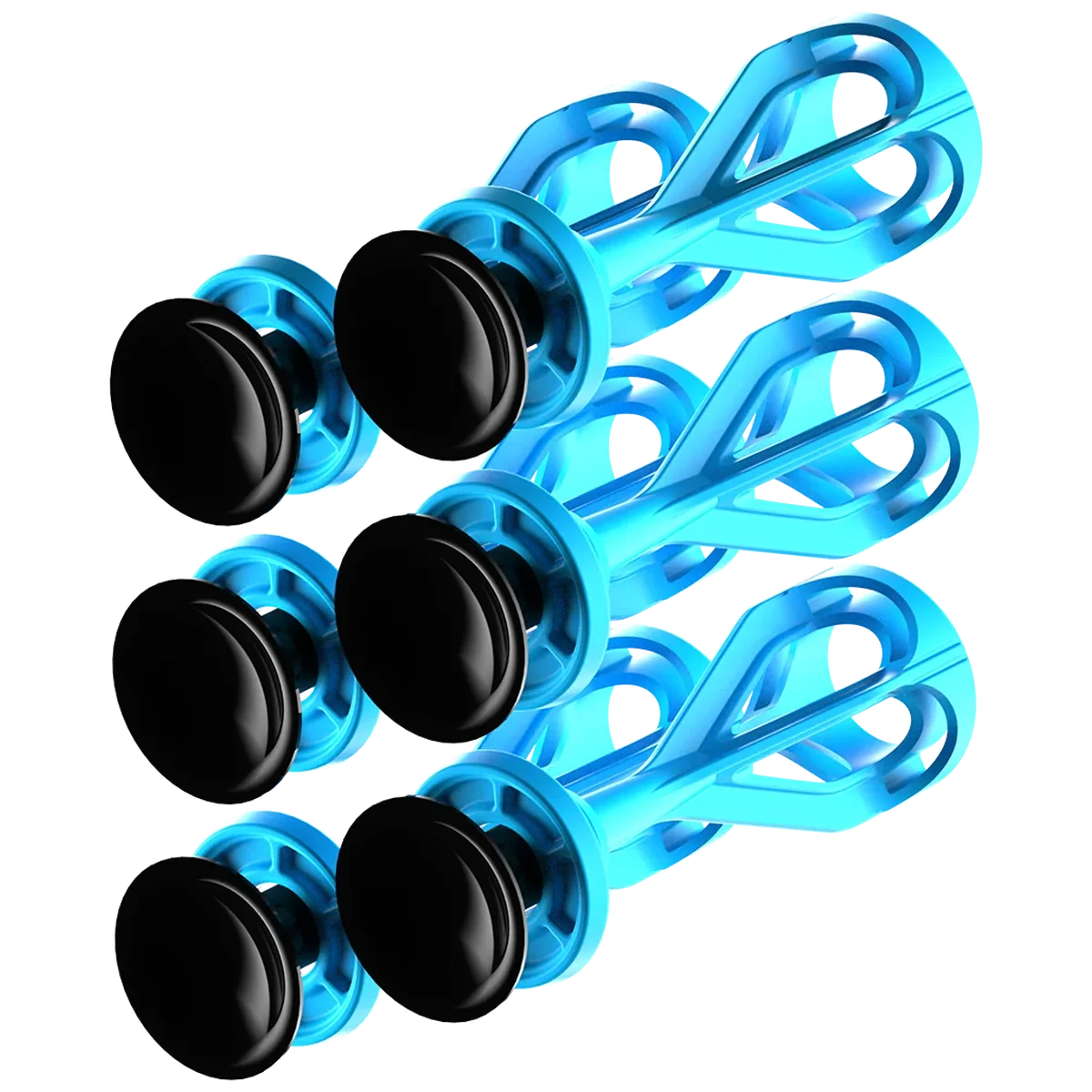 A 6-pack of blue suction darts designed for use with compatible suction-dart toy blasters and targets.