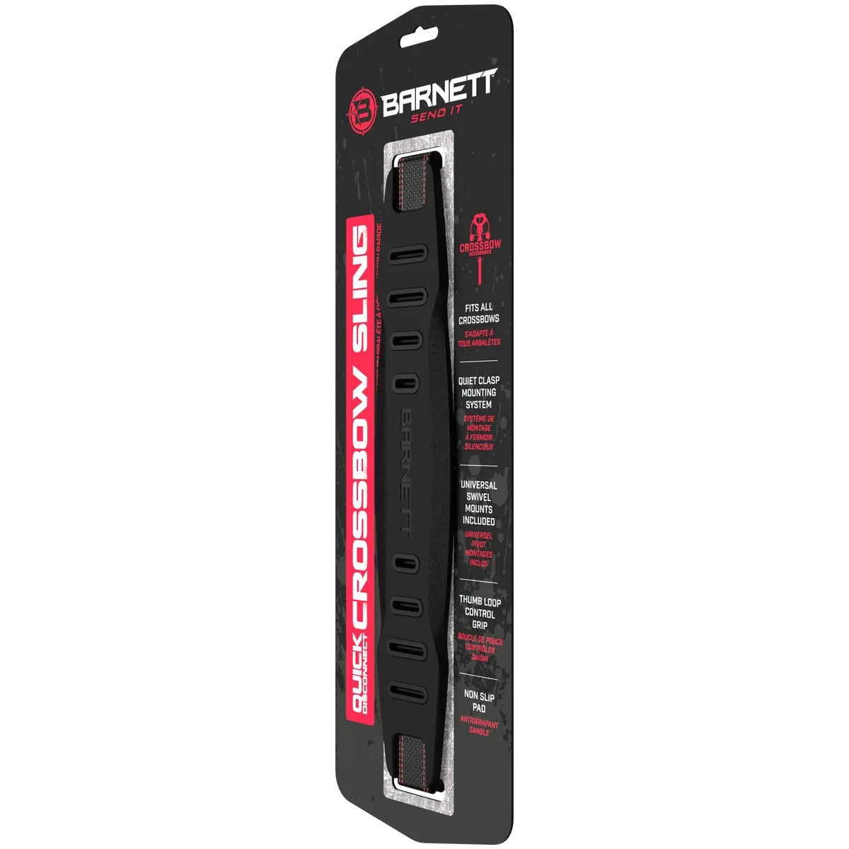 The Quick-Detach Crossbow Sling provides a simple, durable carrying solution that fits any make or model of crossbow. The adjustable strap (32"-40" / 81-102 cm) and non-slip shoulder pad give a secure, comfortable fit that minimises sliding and bouncing while on the move. A large thumbhole loop offers a reliable control point for managing your crossbow with one hand when negotiating uneven ground. Installation and removal are fast and straightforward: the quick-release design lets you detach the sling without tools, and the quiet clasp mounting system reduces noise during handling. Universal swivel mounts are included to fit a wide range of crossbow stocks and configurations, making this sling a practical, no-nonsense accessory for everyday use and field carriage.