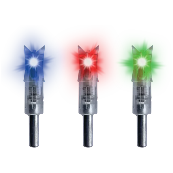 - 3-pack of multicolour strobe lighted half-moon nocks for improved arrow visibility and easier recovery