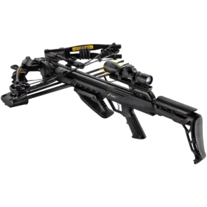 Rich with features, such as an extendable rear stock, string stopper to reduce vibration and a 4×32 scope, the Blade+ offers incredible value! Construction is from a mix of aluminium and composite, with die cast cams. As with many of EK's high performance bows, it uses a bullpup trigger to help compact the design and also comes with an A2-style pistol grip. This accurate yet lightweight bow will deliver 20" bolts at up to 340FPS. IN THE BOX – 1x Blade+ crossbow – 3x Carbon 20" bolts – 1x 4×32 scope – 1x 3-bolt quiver – 1x String stopper set – 1x Pistol grip – 1x Cocking rope (100cm) – 1x Safety glasses – 1x String wax