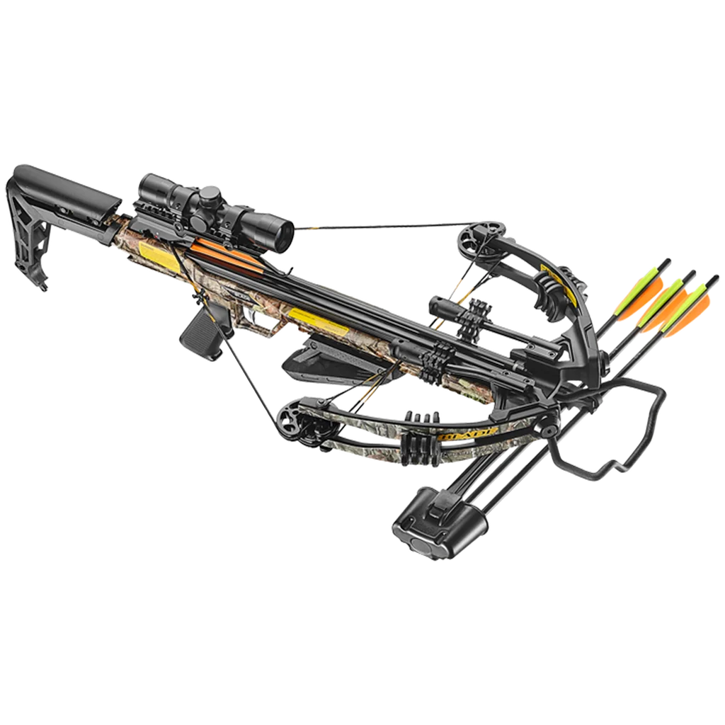 Rich with features, such as an extendable rear stock, string stopper to reduce vibration and a 4×32 scope, the Blade+ offers incredible value! Construction is from a mix of aluminium and composite, with die cast cams. As with many of EK's high performance bows, it uses a bullpup trigger to help compact the design and also comes with an A2-style pistol grip. This accurate yet lightweight bow will deliver 20" bolts at up to 340FPS. IN THE BOX – 1x Blade+ crossbow – 3x Carbon 20" bolts – 1x 4×32 scope – 1x 3-bolt quiver – 1x String stopper set – 1x Pistol grip – 1x Cocking rope (100cm) – 1x Safety glasses – 1x String wax