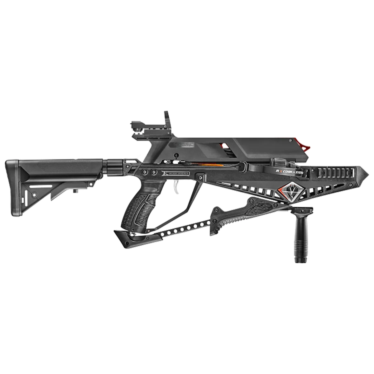 The EK Archery Cobra Adder is based on the extremely popular Cobra RX crossbow. The Adder brings something entirely new and innovative with a top loading magazine. This magazine allows for quick and easy follow up shots. With a draw weight of around 130lbs the adder also continues to have great accuracy and range. The adjustable AR-Style stock ensures easy shouldering and a comfortable firing position. This is something entirely new to the world of crossbows.