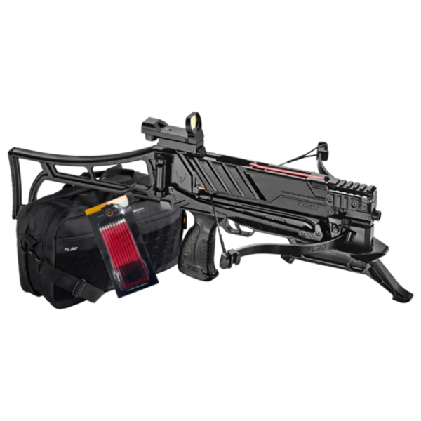 Take advantage of the Deluxe Kit for the EK Archery Vlad Crossbow; Comes with the crossbow, An extra pack of bolts for a grand total of 26 and a carry case to store everything in! The EK Archery Vlad Pistol Crossbow features an 8 bolt magazine, folding stock, two limbs (60 &90lbs) and a selection of other great addon accessories. It also comes with a speedloading clip to make reloading the magazine quicker and more efficient and this can be attached to the side of the crossbow for easy storage. You get 16 bolts in the box which is enough to load up the magazine AND the speedloader. Box Contents: 2 x Front end units (60Lbs & 90Lbs) 16 x 6.5" Aluminum Bolts 1 x Aluminum red-dot Sight 1 x Quick loader 1 x Stringer 1 x Spare string 1 x Safety Glasses 1 x String wax