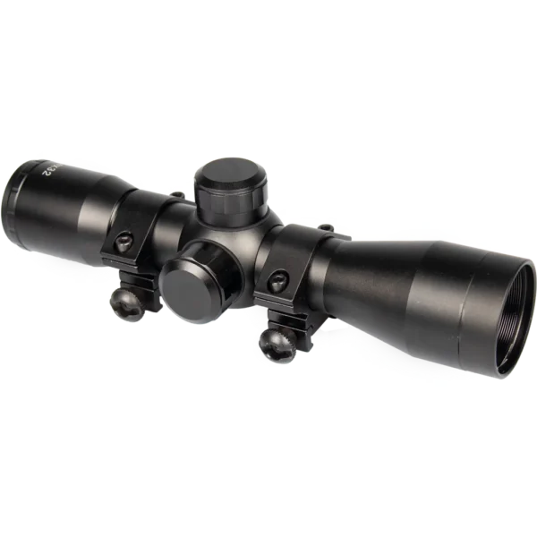 Set your sights on this amazing product: the Man Kung 4×32 crossbow scope is a great addition for a wide range of crossbows. Let this scope enhance your aiming game with its wide field of view and four times magnification. The matt-black scope allows for precise aiming with its lateral and vertical adjustment. The scope is shock and recoil proof, as well as splash proof. Thanks to the nitrogen gas filling, it doesn’t fog up. Along with that, the lenses are fully coated, and the scope comes with a protective cover, making safe transportation less of a hassle. This scope is suitable for crossbows with a 20 mm Picatinny rail. Length: 190 mm Weight: 296 grams