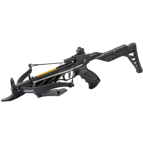 - This crossbow also has a length-adjustable stock that you can put against your shoulder when aiming.