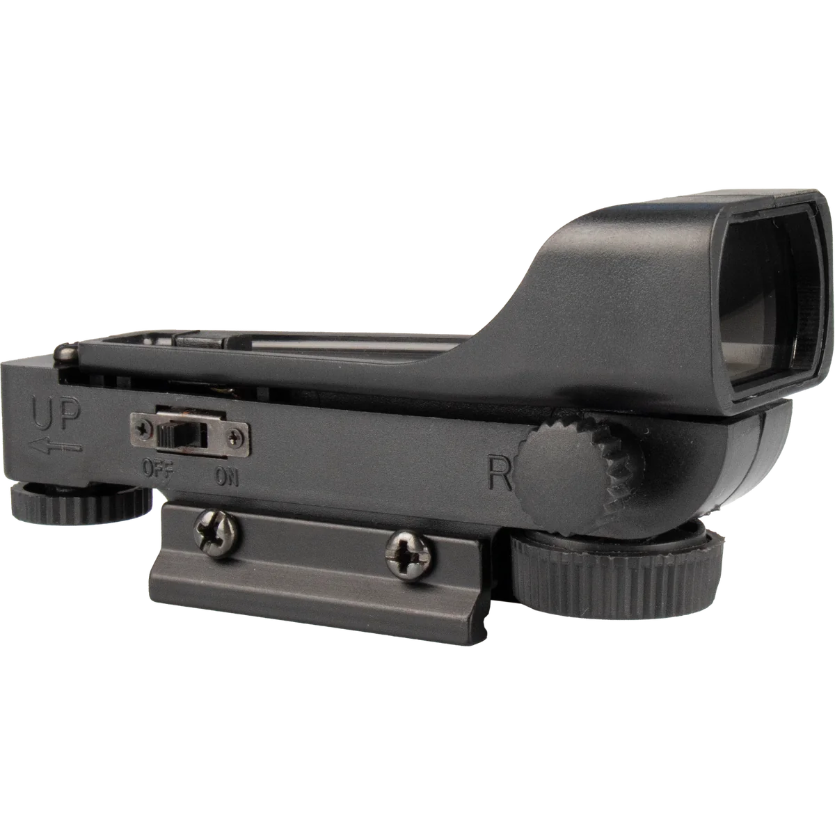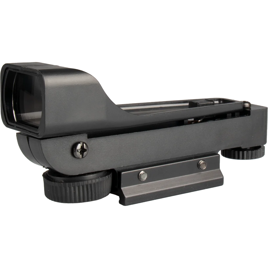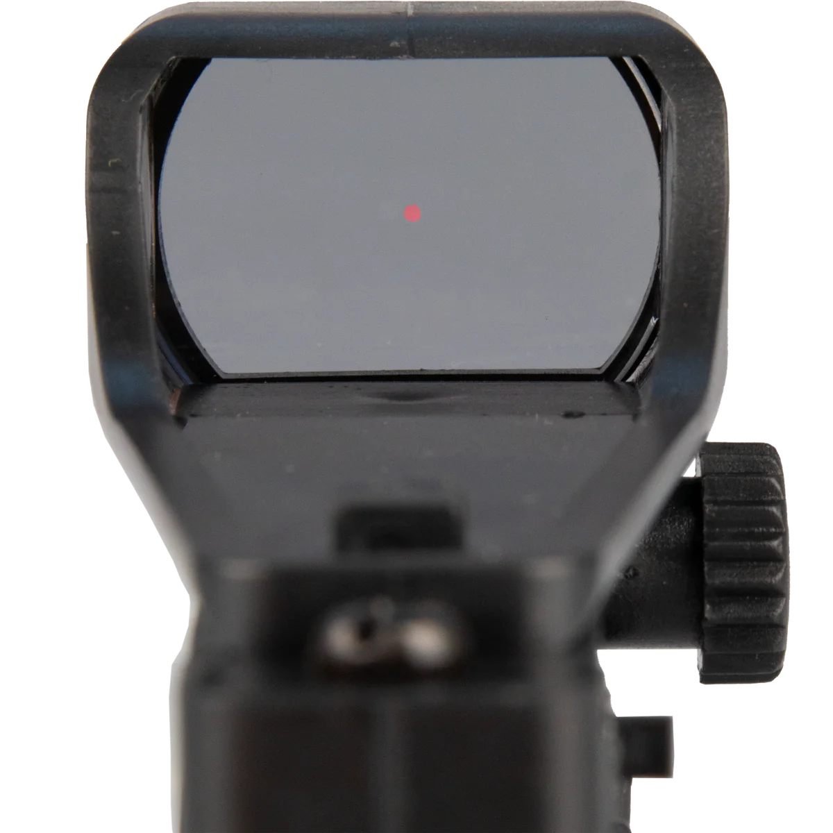 Easy in use thanks to its Picatinny rail, the Man Kung MK-RDP crossbow red dot sight is a great addition to any short-range crossbow. Aiming has never been this easy with the 22.0X33.0mm Objective Lens, which offers a bright and clear sight on your target. The LED light can be switched on and off. The aim can be adjusted in elevation and to account for windage. This great red dot sight comes with a cleaning cloth, battery and user manual.