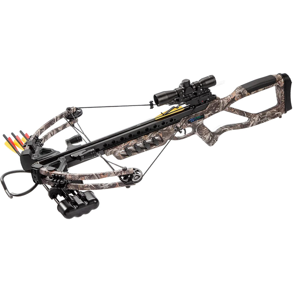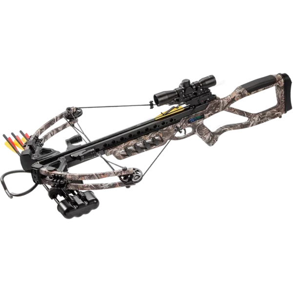 Made for excellence, this crossbow has a draw weight of 185 LBS, causing it to reach a notable 370 FPS (113 m/s). In a flash, a target up to 90 meters can be shot accurately! In terms of design, the bow section and a variety of rubber dampers are reminiscent of the MK-XB52BK. The MK-XB86DC is outfitted with a recoil damper, built-in finger guards in the fore grip, and a soft coating to its stock, all to enhance the user comfort. The 20mm Picatinny rail allows users to add different types of sights to boost their aiming experience. The MK-XB86DC has the renowned anti-dry fire technology, lowering the risk of accidentally loosing a shot without a bolt loaded in. A foot stirrup is included at the barrel end that helps to load the bow. It’s also fully compatible with cocking ropes which give you a mechanical advantage while cocking. This significantly reduces the draw force required and makes loading it a much smoother experience. This marvellous crossbow comes with a 4×32 sight, sling, quiver, cocking string and 4 Man Kung 20 inch aluminium crossbow bolts. We recommend this crossbow to experienced users due to its sheer force.