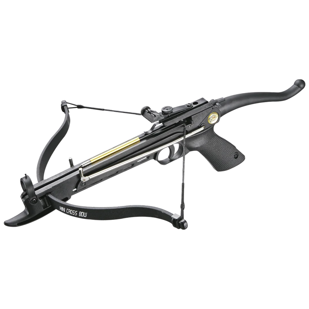The Man Kung MK-80A4PL recurve pistol crossbow is, like other pistol crossbows, wonderful to use in smaller spaces like a backyard or garage. A standout feature of the MK-80A4PL is its innovative cocking mechanism. By releasing and pulling down the lever at the back of the crossbow, the string is effortlessly drawn back and the bow is cocked. Additionally, this crossbow is equipped with a safety catch and an adjustable sight that can be precisely set for the desired shooting distance. It comes with 3 bolts and features a distinctive design that has earned it the nickname "the Cobra." The MK-80A4PL combines functionality and style, making it an ideal choice for anyone looking for a reliable and easy-to-use pistol crossbow.