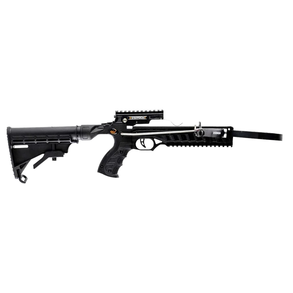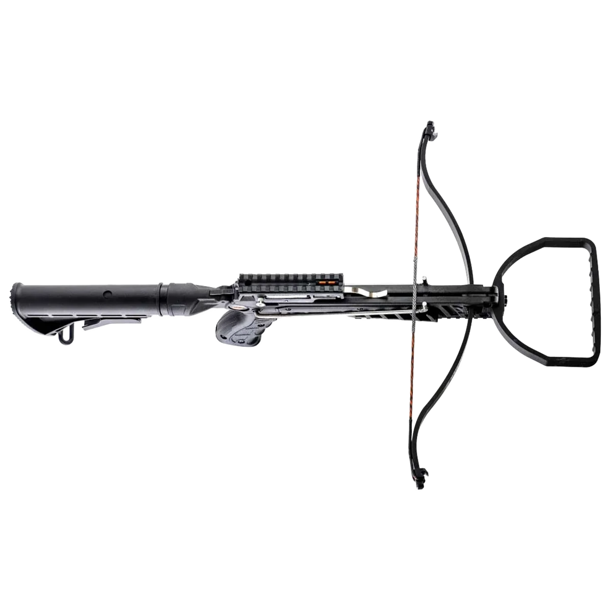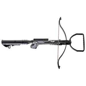 The revolution in light, tactical crossbows continues: The newest member of the AR-6 Stinger II family features the same clever design and high quality of the other Stinger variants, but is optimized to deliver a precise single shot. The AR-6 Stinger II Survival is very light (around 1 kg), compact, and can be easily broken down. It is an ideal companion on extended adventures. You don’t need to bring along any tools, because everything you need for assembly is integrated into the Survival. Unlike the AR-6 Stinger II Tactical and Compact, the Survival is equipped with a manual safety. The telescoping buttstock allows you to shoot safely and comfortably, especially when using a scope (such as a 4×32 model). The foot stirrup allows the Survival to be cocked in the same manner as a conventional crossbow, which can be especially beneficial at higher draw weights.