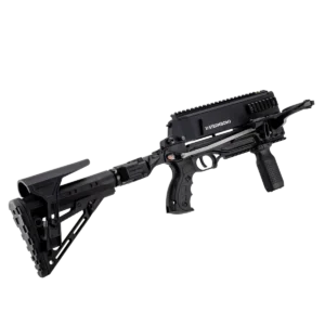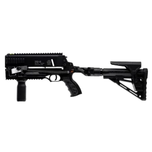 The concept of our PD-5 is simple: the range, penetration power, and impact of a full-size repeating crossbow in the size of our compact and maneuverable AR-Series platform. During the development of the PD-5, great emphasis was placed on ergonomics. Aiming for the fastest possible target acquisition and handling that resembles a real firearm allows for a quick, effective first hit. Rapid follow-up shots, are easily possible thanks to the robust quick cocking system.