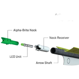 - Positive, indexed installation: LED inserts into the translucent pegged Alpha-Brite nock and locks into the glued Nock-Receiver, aligning with vanes for consistent seating and function