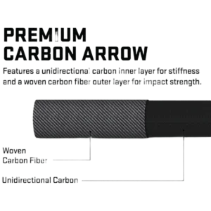 - Rugged carbon construction – unidirectional carbon inner layer for stiffness combined with a woven carbon outer layer for impact strength; includes an 87-grain brass insert and 3" Bohning X vanes.