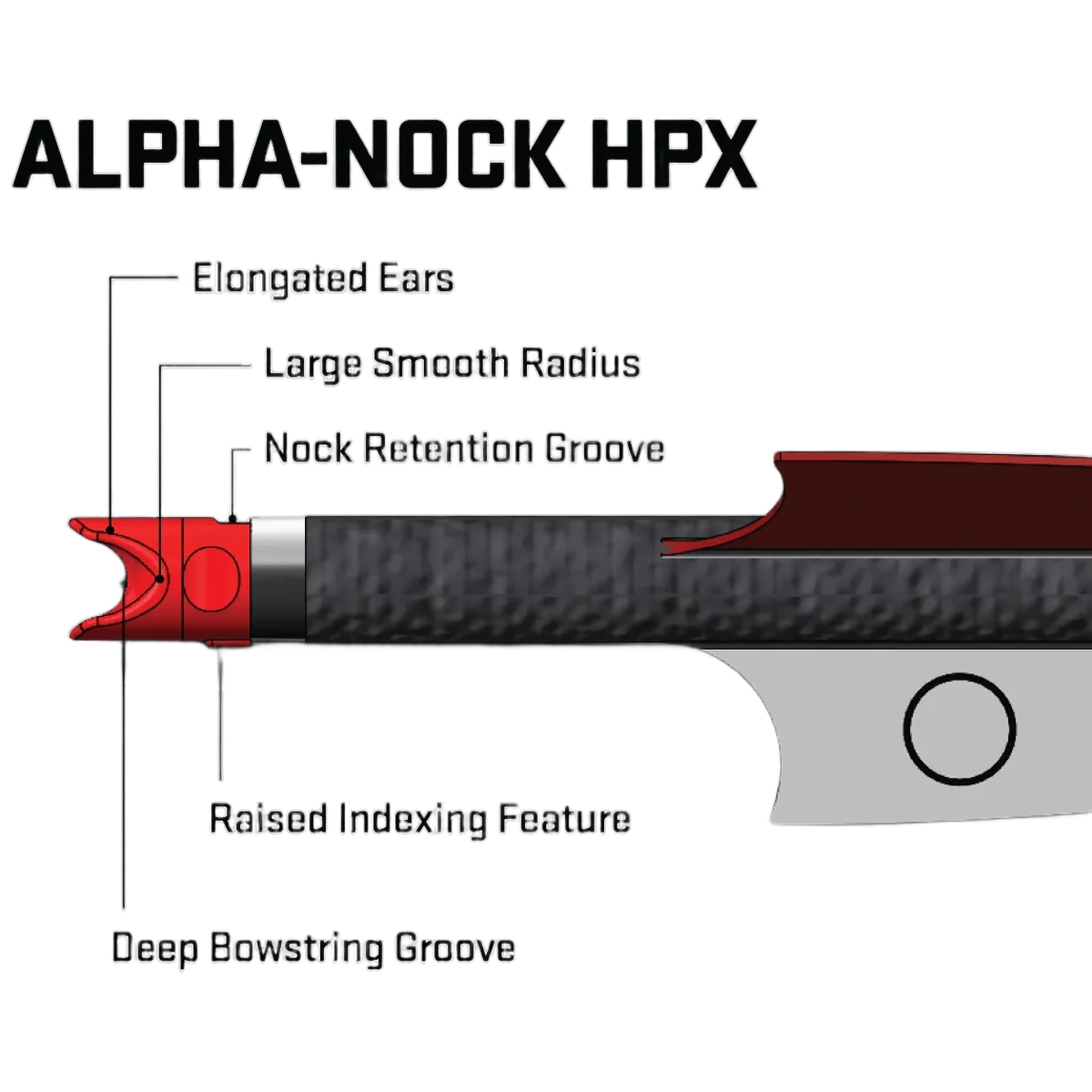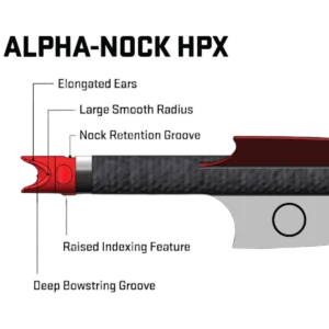 - Crossbow-ready Alpha-Nock HPX features an HP aluminium bushing, deep bowstring groove, large smooth radius base and elongated ears for straight nock travel, reduced serving wear and compatibility with all railed TenPoint & Wicked Ridge crossbows (3-pack).