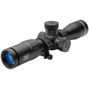 - Multi-tier reticle with three illuminated dots at 20/30/40 yd, three illuminated crosshairs at 50/60/70 yd, and three non-illuminated chevrons at 80/90/100 yd for a simplified, fast aiming system (illumination selectable in red or green).