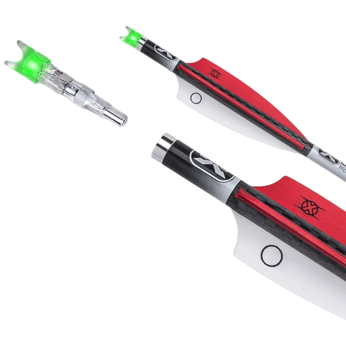 - High-quality components and construction: fletched slightly offset with 3" Q2i Fusion X-II vanes, fitted with a 58-grain aluminium insert, and press-fit one-piece Nock/LED unit indexed with the vanes for repeatable flight.
