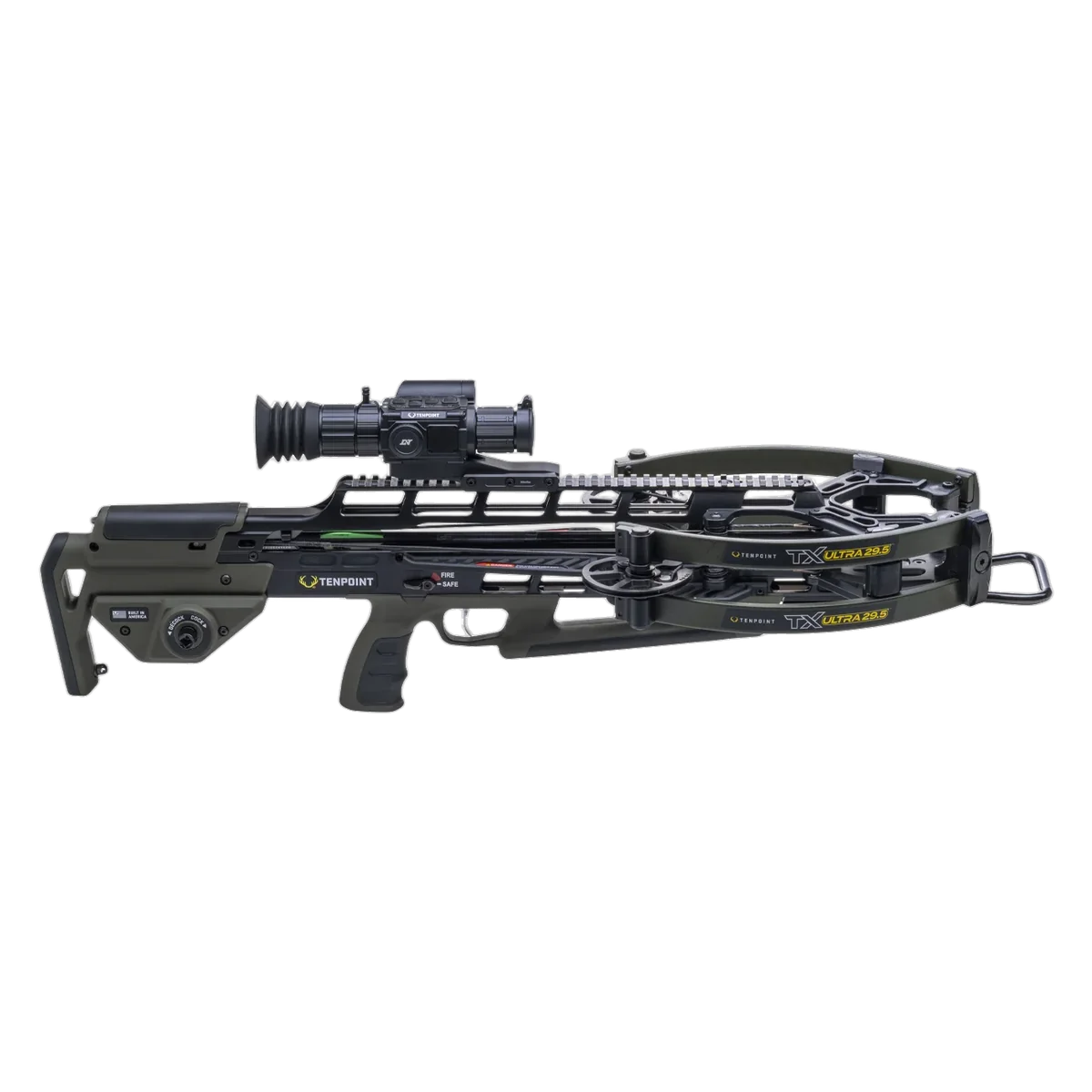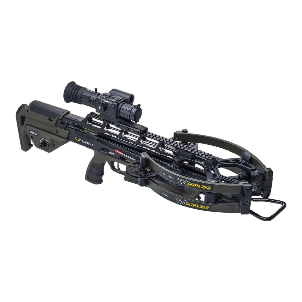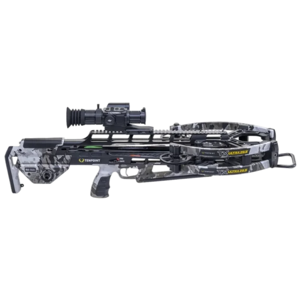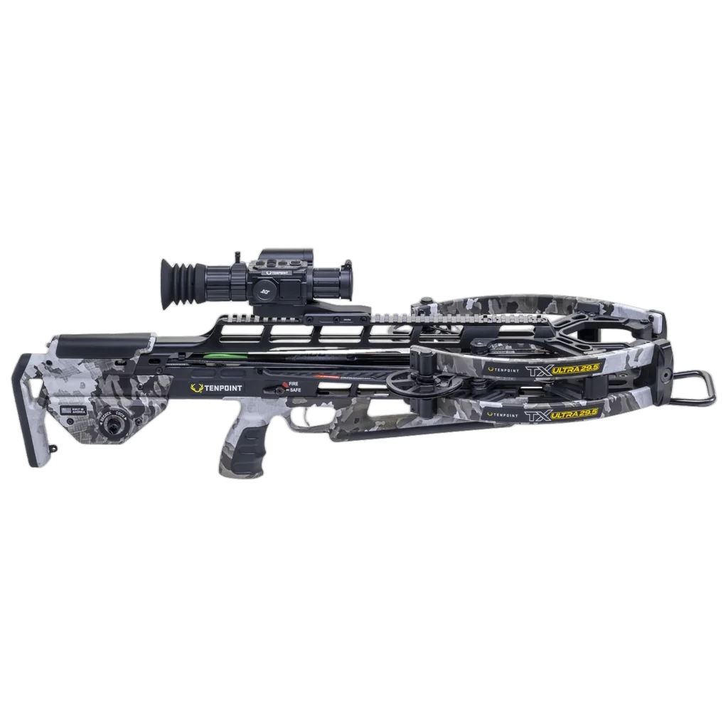 The TX Ultra 29.5 combines a compact 29.5" platform with a narrow 6.5" cocked width (11" uncocked) to deliver both maneuverability and stability for long-range shots. Propelled at 460 FPS from an 8" power stroke, this forward-draw crossbow is engineered to produce consistent, repeatable accuracy-capable of 3" groups at 100 yards-making it well suited for target shooters and archery enthusiasts who demand precision at extended ranges. Every system on the TX Ultra 29.5 is optimised for range performance and reliability. Zero-Torsion Technology (NEW 8 mm axles and NEW X-Wide limbs), Twin-Riser construction and the ACU-Lock scope bridge provide a rigid foundation for shot-to-shot consistency, while the TriggerTech zero-creep trigger and AR-style ambidextrous safety offer controlled, confident shooting. The included Vision HD digital scope simplifies setup with One-Shot Zeroing, stores ballistic profiles, and records practice sessions in high clarity. Combined with ACU-X arrows, a premium string, ZERO-Trac rail-less design and the ACUslide MAXX cocking/de-cocking system, the TX Ultra 29.5 is built to deliver accurate, repeatable performance and reliable operation at the range.