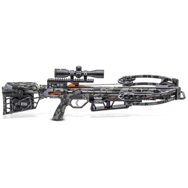 The Wicked Ridge Invader M1 De-Cock brings the convenience of compact de-cocking to a value-minded crossbow built for target shooting, recreational archery and competitive sport. Equipped with the ACUdraw De-Cock system (or the ACUdraw 50 SLED manual de-cock option), it provides quiet cocking and safe, controlled de-cocking at the push of a button or by sled – eliminating the need to discharge an arrow to lower the bow. The Invader M1 delivers strong performance, shooting at 390 with a 190 power_stroke while remaining easy to handle thanks to its compact profile (length: 32; width cocked: 9.5; width uncocked: 14) and light overall weight (5.8). Set up for immediate use, the Invader M1 includes a 70-yard Pro-View 400 lighted scope with an updated reticle and is pre-sighted at 20-yards to help you get on target quickly for range practice and competition. Built and inspected in America, this model balances practical features and accuracy in an affordable package well suited to club sessions, target ranges and recreational shooting.