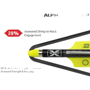 - Patented Alpha-Nock HP-deep bowstring groove, large smooth radius base and elongated ears-yields straight nock travel, reliable contact and reduced serving wear